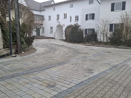 Der letzte Bauabschnitt im Bereich zwischen Stadtplatz 31 und 32 wird voraussichtlich Ende März 2026 abgeschlossen. Hier werden das vorhandene Kopfsteinpflaster sowie der Gehweg zurückgebaut und der Bereich - analog zu den vorherigen Abschnitten - barrierearm neugestaltet. Im Anschluss werden das Mobiliar und die Beleuchtung erstellt sowie Pflanzarbeiten durchgeführt.