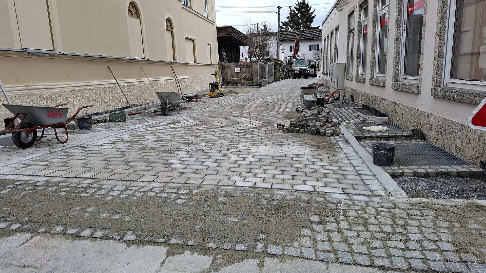 Die Pflasterarbeiten für die barrierearme Neugestaltung der Baumburggasse werden heute, dem 26.03.2026, abgeschlossen.